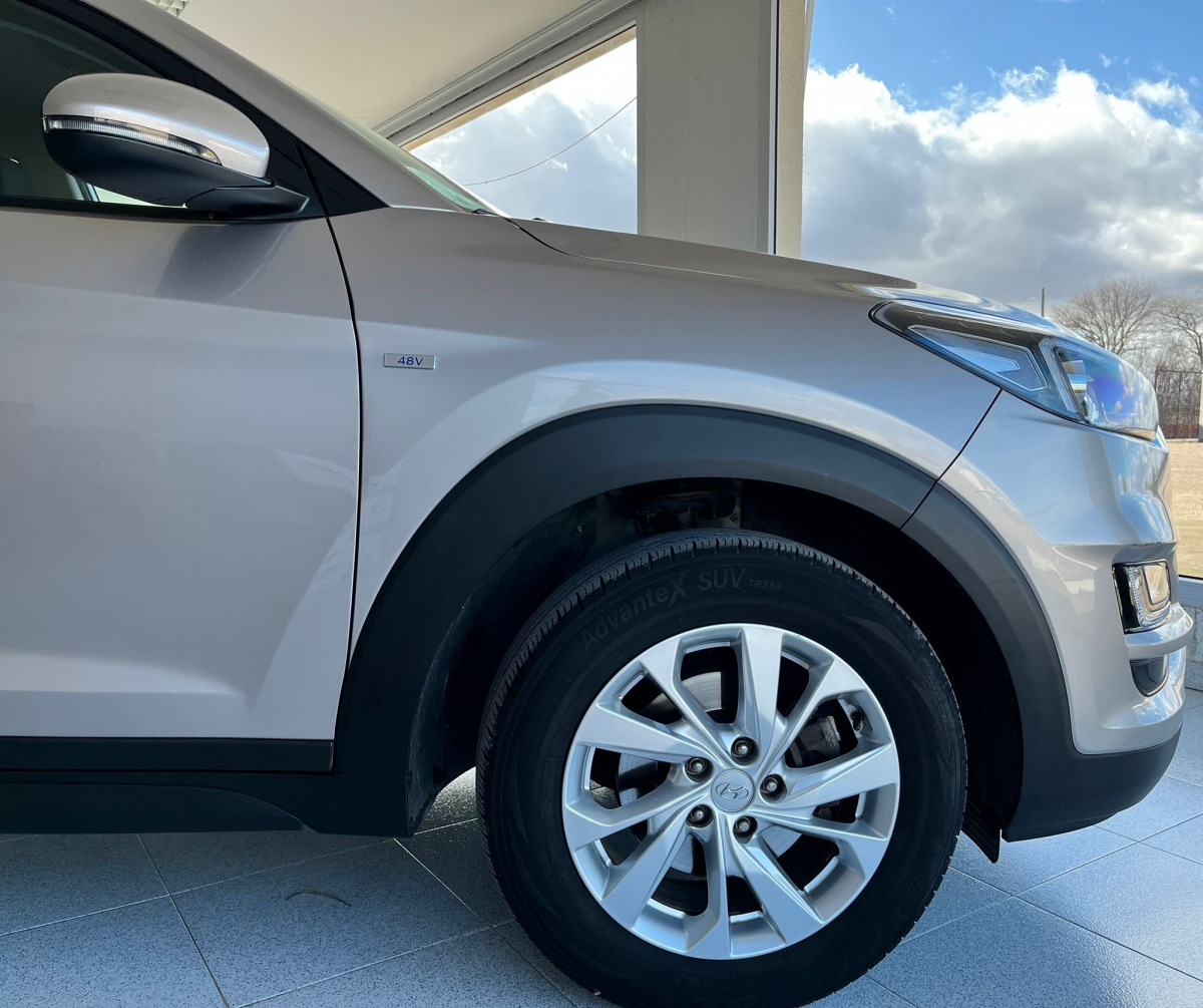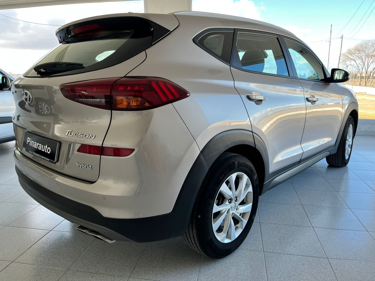 Descubre este Hyundai Tucson Hybrid, un SUV moderno y eficiente que combina diseno, confort y bajo consumo. Acabado en beige/plateado metalizado, destaca por su imagen robusta y actual, ideal tanto para ciudad como para largos viajes.