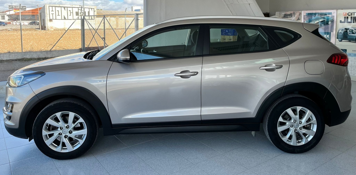 Descubre este Hyundai Tucson Hybrid, un SUV moderno y eficiente que combina diseno, confort y bajo consumo. Acabado en beige/plateado metalizado, destaca por su imagen robusta y actual, ideal tanto para ciudad como para largos viajes.